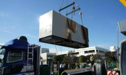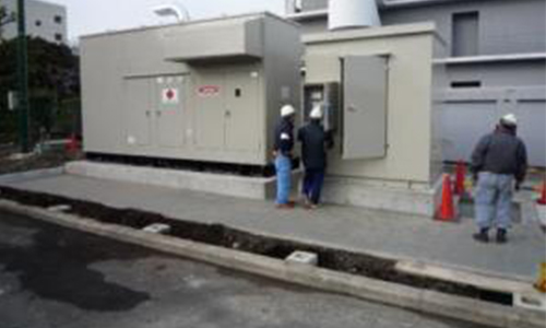敷地内の管理施設のバックアップ電源として、500kVAの発電機本体、油庫(950L)、地下タンク(8,000L)からなり、当社は、搬入・据付・配管施工・現地調整を担当。