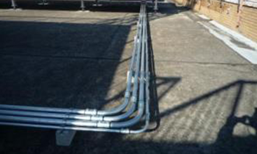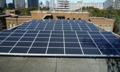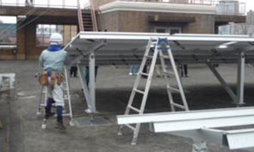 BCP対策にて、建物屋上(陸屋根)に30kWのモジュール(120枚)・機器類(PCS3台・集電箱1台)を設置、電気及び管理室への配管・配線を実施。停電時は本システムより一部負荷へ電気を供給。